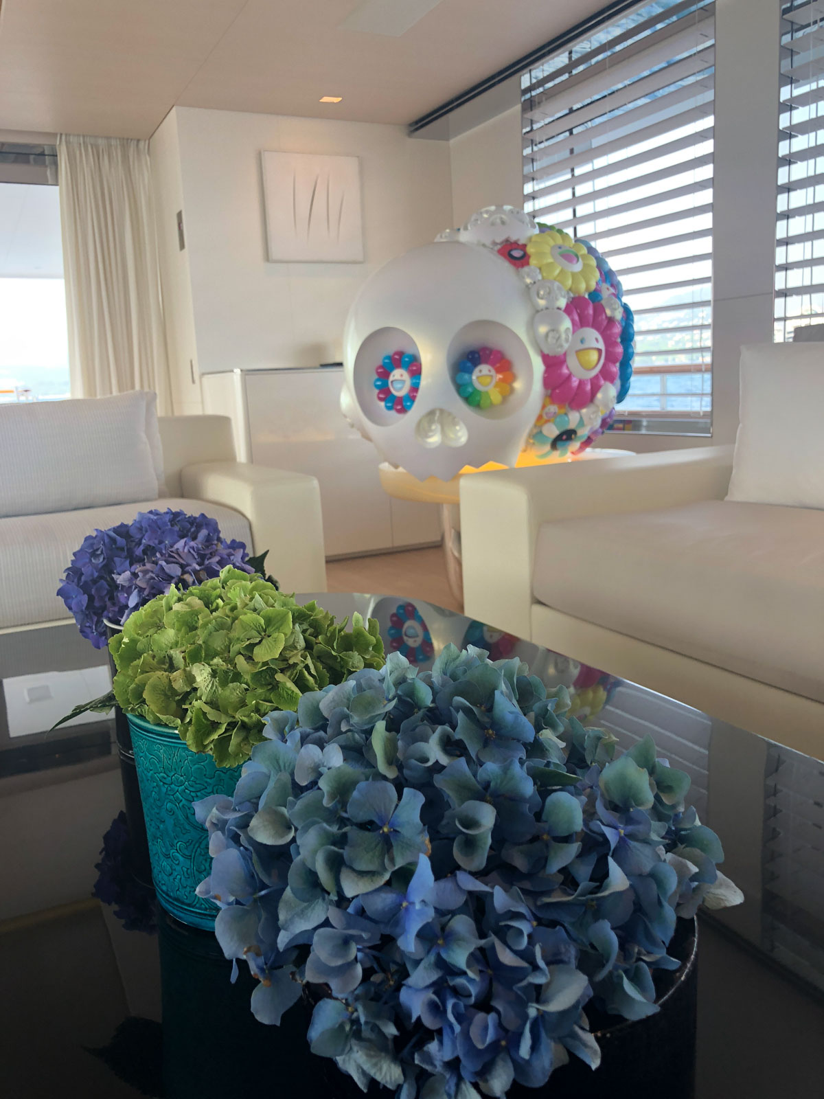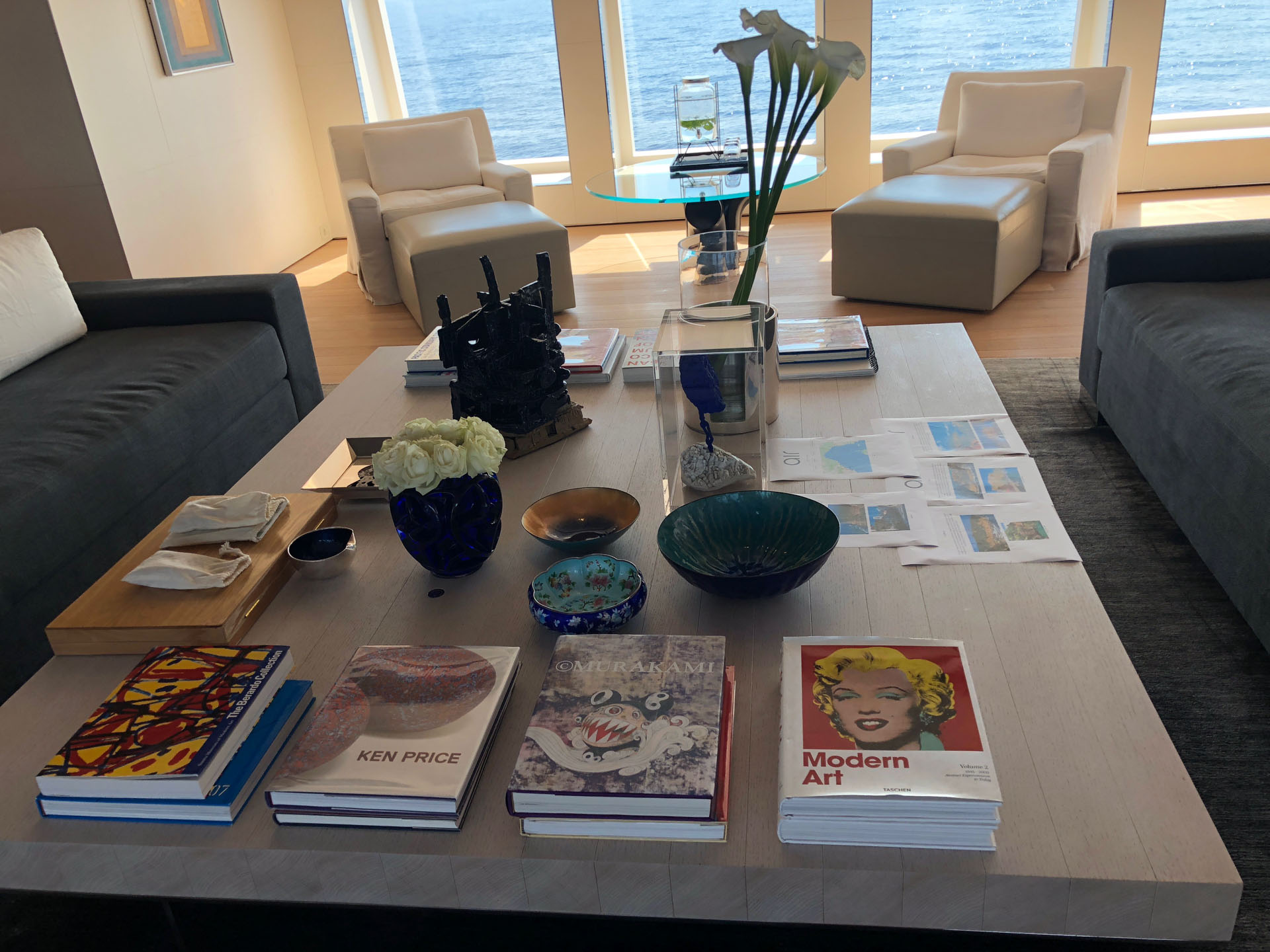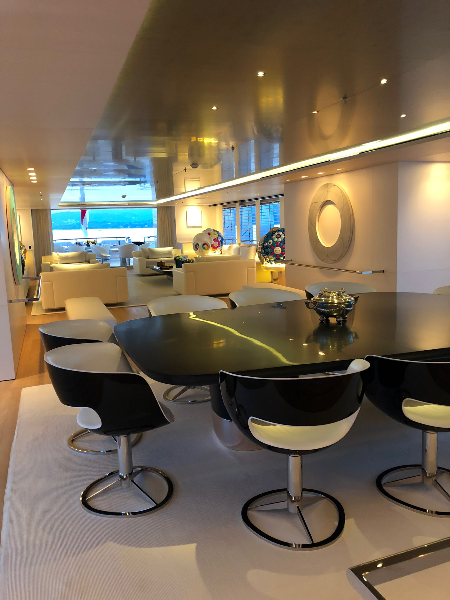 Even though I already know what to expect on a super yacht, the latest technology, ultra luxurious and stunning decor etc, my first wow on Air is when I saw a Lucio Fontana hanging in the living room wall. It is very much a happy surprise to see one of my all time favourite artist’s work but I didn’t expect this 5 million worth of art work would be just hanging there, without even a glass cover protection, in the middle of the ocean. My every day walk passing the living room to the outdoor dining room became one of my favourite.
