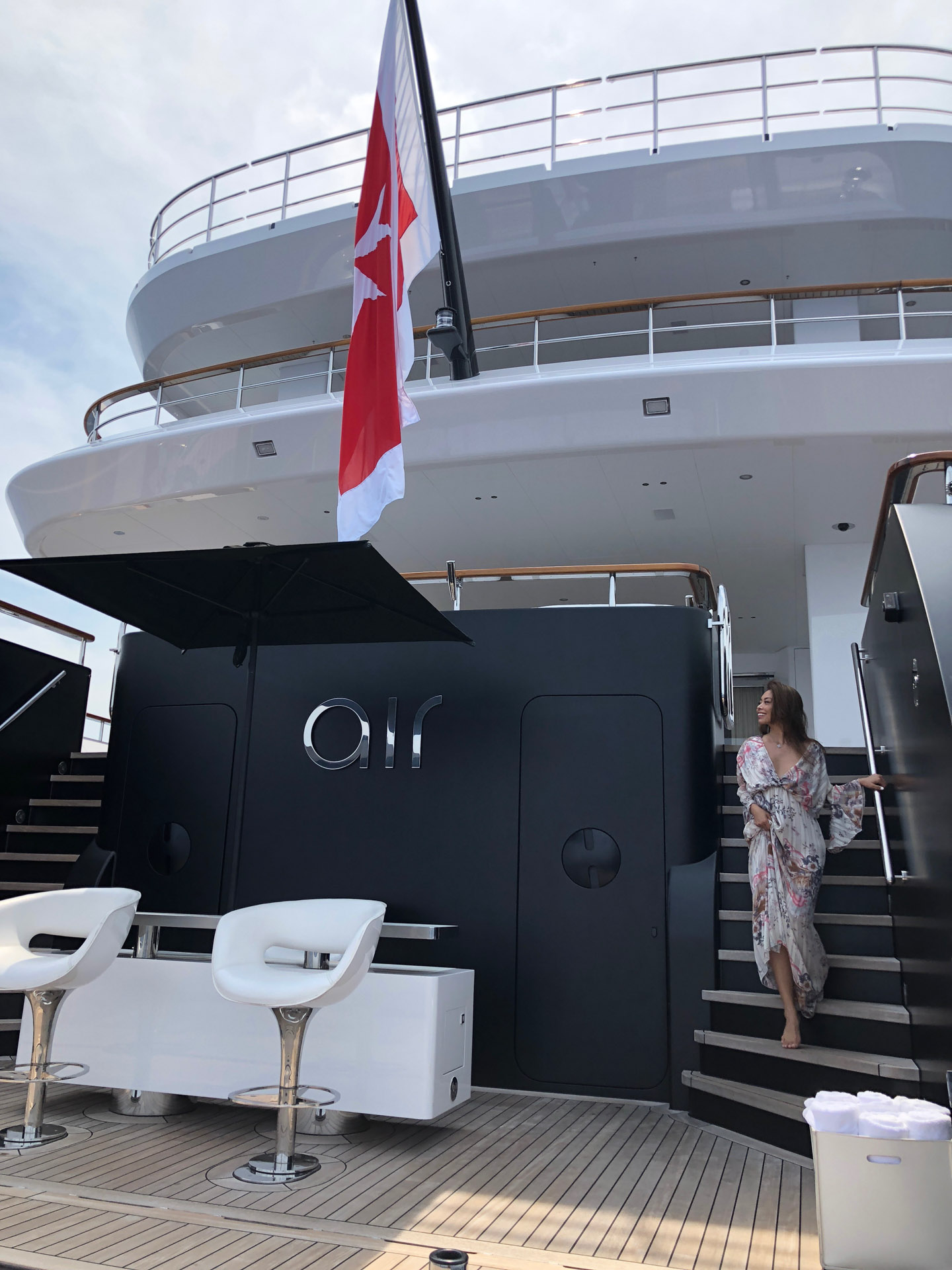 My other surprise is the level of service that was provided on board. I have stayed in hundreds of five star hotels and I used to love being treated like a princess in the hotel as everything is a telephone button away. However, Aman? One and Only? Four Seasons? nothing compares to a mega yacht like Air. You name it, they have it. On arrival with my large Rimowa case the crew unpacked everything for me. Clothes are hanged perfectly in the walk in wardrobe, underwear are folded perfectly in the drawers, handbags and shoes are perfectly placed and showcased, they also pressed every piece of dress that might became crease from the travel. My make up bag has about 50 different items in it and they arranged them like a piece of art. The room is spectacularly clean and neat when I first settled and it stayed that way the entire time—every time I walked out of my room they must have a monitoring system somewhow that they send a deck crew to tidy it up, anything doesn’t survive for 5 minutes in my rubbish bin in the room as soon as I leave the room, it was incredible.